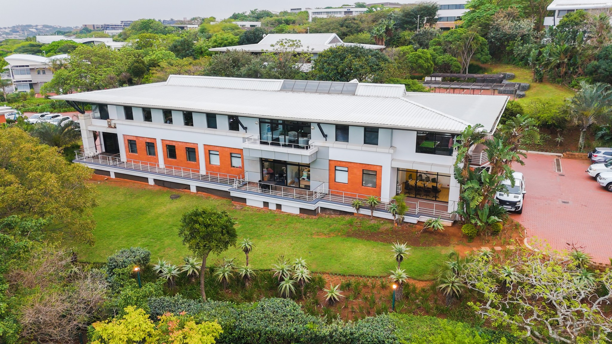 The property measures approximately 3 340 m² in extent with a gross lettable area of 1 100 m². It offers 57 dedicated parking bays and comprises a modern, well-maintained office block within a secure park environment. The building is professionally presented and enjoys excellent accessibility and visibility within the Umhlanga node.
