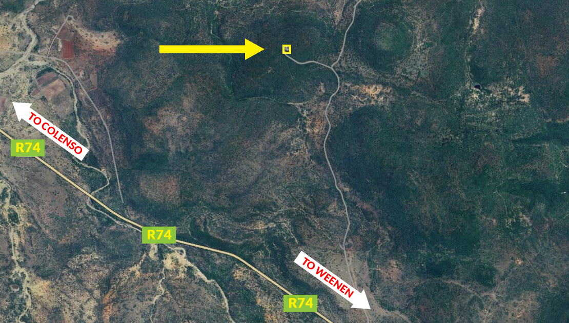 Extent: ± 2 342 m² | GBA: ± 138 m² | Zoning: Agricultural | Fully fenced | Communication Tower: The purchaser is compelled to enter into an Occupation & Use Agreement with Swiftnet SOC Limited for a period of 9 years and 11 months for a rental amount of R2800 per month (excl vat) escalating at CPI | Co-Ordinates: -28.8047278, 29.98463333