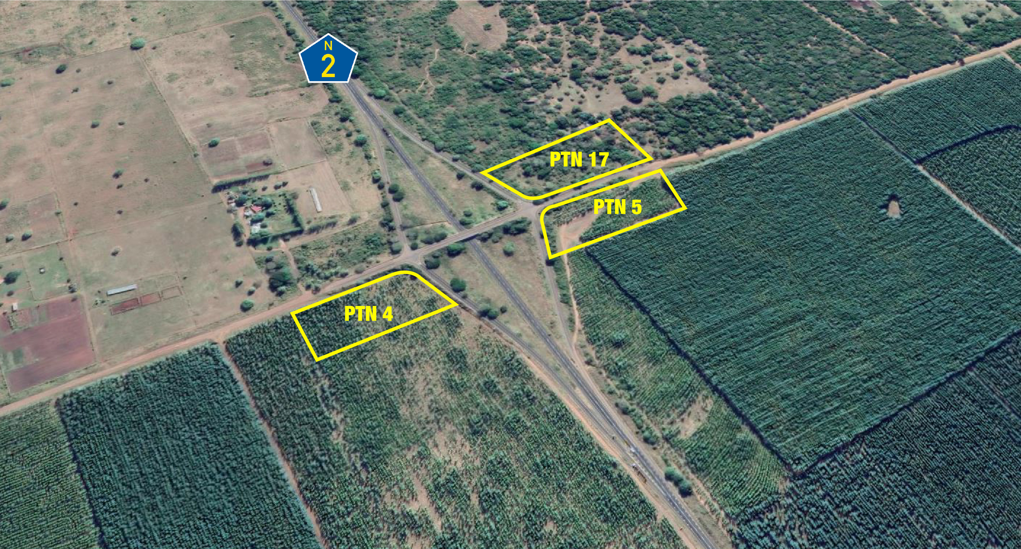 These sites are accessed via the Bushlands Off Ramp and all 3 sites are positioned at the corner of the off ramp from the N2 and the D123 Road. Portion 4 has an extent of ± 1, 2764 Hectares and is located at the corner of the North bound off Ramp and the D123 Road. Portions 5 and 17 are situated opposite each other along the South bound offramp / On Ramp. Portion 5 has an extent of 1, 0459 Hectares with portion 17 having an extent of 1, 0282 hectares.